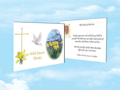Extra Cost for Lamination of Acknowledgement/Thank you Card (Folded or Flat or Letter Version) and Bookmark Holders ….. Cost is extra €8.00 per every 25 Cards.